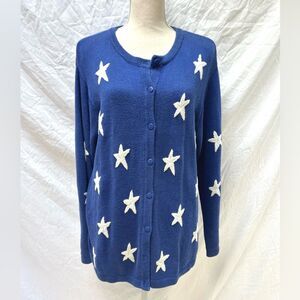 The Quacker Factory Sweater Cardigan Stars & Stripes Patriotic Preppy Vintage L