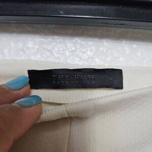 Excellent pre-loved condition The Row pants for women. Cream color size 4. Made in the USA. callouts are the small spots of dirt or stains in the back area shown in the photos.