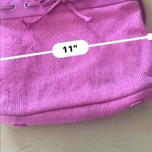 Crossbody strap is removable. Bright pink small purse with bow detail. Small little snag pictured. This purse is so cute!