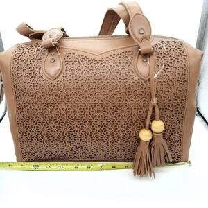 The Sak Purse Bag Satchel Leather Laurel Canyon Tobacco Moroccan Perforated