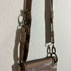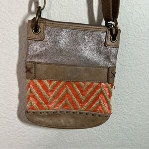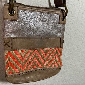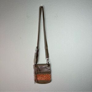 The Sak Small Taupe & Orange Crossbody Leather Purse