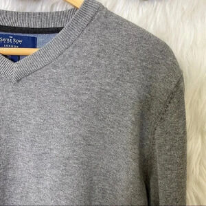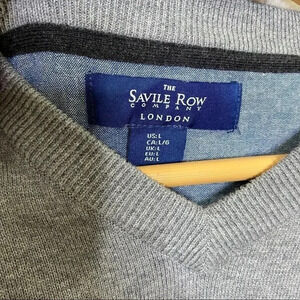 The Saville Row Company London Grey Cotton V-Neck Sweater