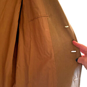 Experience timeless style with The Territory Ahead Silk Blend Sport/Barn jacket in a versatile light academia brown. Designed for those who appreciate a blend of casual elegance, this mid-length coat is a perfect addition to any wardrobe. It offers a solid pattern that pairs effortlessly with a variety of outfits, making it an essential for transitional weather. This is in good preowned condition with no rips, holes or stains. Please see images for details and approximate measurements. This jacket is in good preowned condition with no rips, holes or stains. Please see images for details and approximate measurements.
