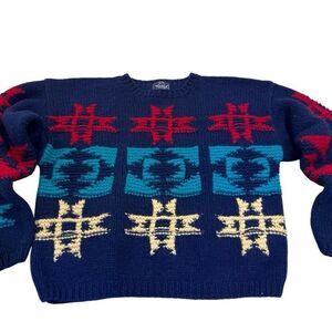 The WOOLRICH Woman Aztec Sweater Size Large Colorful 100% Wool Vintage