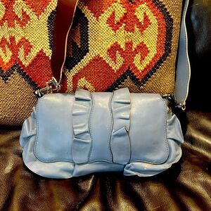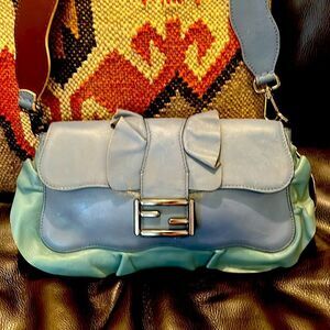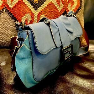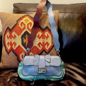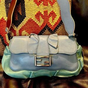 Fendi blue calfskin leather shoulder bag is perfect for any occasion. Its sleek design and high-quality material make it a must-have accessory.The wave by Fendi.