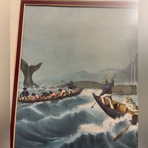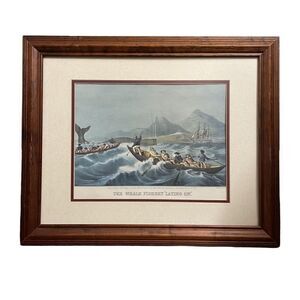 The Whale Fishery “Laying On”1852 Framed & Matted Lithograph Print by N. Currier