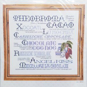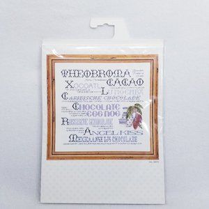 Thea Gouverneur cross stitch kit #3013 Cacao/chocolate sampler, from one of the leading European cross-stitch designers, based in the Netherlands. There is no information on the package, but info from other sites say this kit contains : DMC 100% cotton threads, chart, needle, 36 count linen, and easy instructions in six languages : English, German, French, Spanish, Italian, Russian. Finished size is 15.4 x 14.6 inches. Condition is new/sealed.