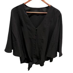 Thea by Chelsea and Theodore black blouse with gold lace front detail size large