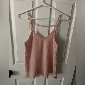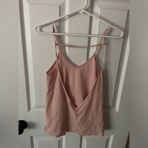 Stylish light pink camisole with spaghetti straps. Features a deep back design. Ideal for casual wear.