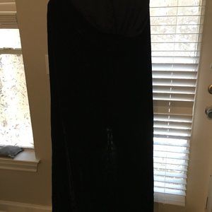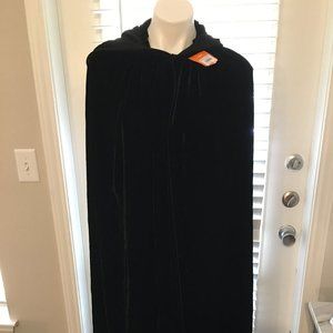 This is a cape for any occasion, theater, Halloween, party, goth. Black and hooded, no sleeves, velcrow at the neck