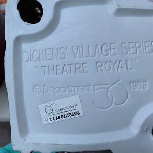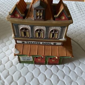 Series: Dickens' Village Series - Theatre. Year: 1989 - 1992. Size: Height 8 1/4" x Length 5 1/4" x Depth 6".Trees not included