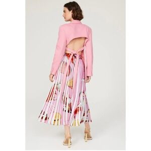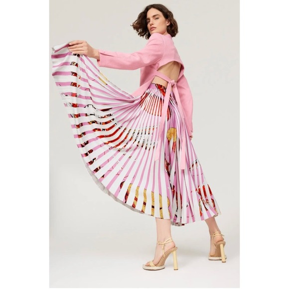 Thebe Magugu Pink Plisse Maxi Skirt Pleated Fish & Chips Print A-Line Sz S