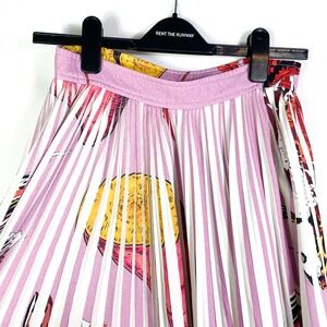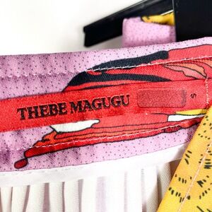 Keywords: Thebe Magugu skirt, pleated midi skirt, striped skirt, designer skirt, women's midi skirt, Size S skirt, colorful skirt, fashion skirt, unique print skirt, high-waisted skirt, flowing skirt, summer skirt, spring skirt