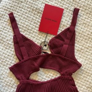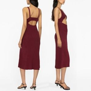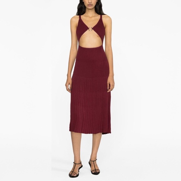 Thebe Magugu Wine Red Rib-Knit Cut-Out Midi Dress - XS - NWT