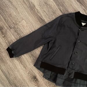 THE SWINGY BOMBER IN WASHED BLACK BY THE GREAT IS CRAFTED IN SUPER SOFT JAPANESE TWILL WITH A CROPPED FIT. THE STYLE IS SLIM AND STRUCTURED IN THE FRONT YET SWINGY IN THE BACK.