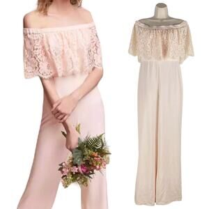 Theia BHLDN Mila Off the Shoulder Lace Jumpsuit Pink Braidesmaid