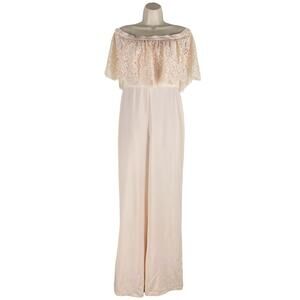 Theia BHLDN Mila Off the Shoulder Lace Jumpsuit Pink Braidesmaid Size 8