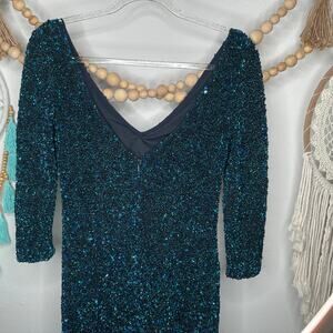 Theia Blue Green Heavy Beaded Bodycon Cocktail Evening Dress