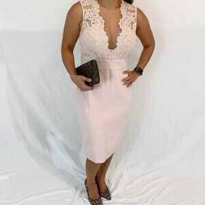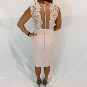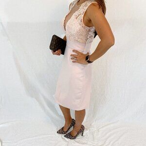 Pink crepe (70% Polyester, 20% Rayon, 10% Nylon). Sheath. Sleeveless. Crew neckline. Hidden back zipper with hook-and-eye closure. Fully lined.