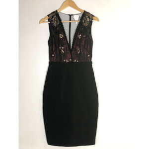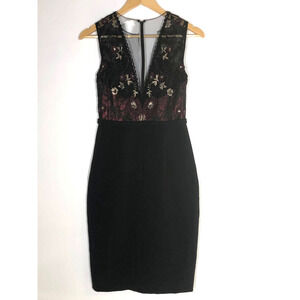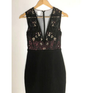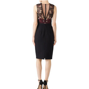 An embroidered bodice and sheer neckline add add modern allure to this feminine.