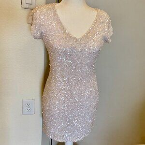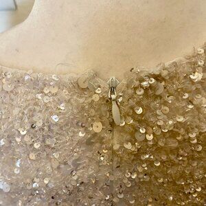 Theia Cap Sleeve White / Silver Sequin Dress Size 2