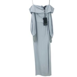Theia Couture Off-the-Shoulder Silk Crepe Balloon-Sleeve Gown Blue Size 6 NWT