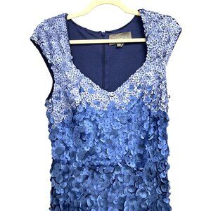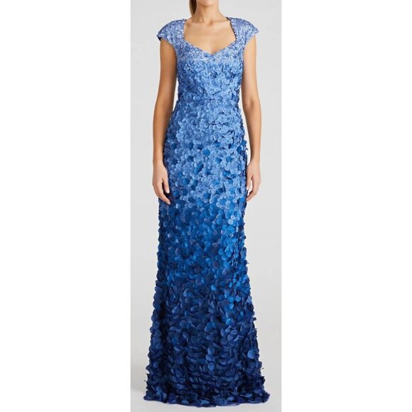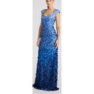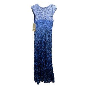 Theia Couture $648 Chelsea Ombre Blue Petal Formal Gown Maxi Dress Size 8 NWT