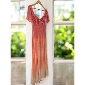 Theia Couture $749 Ombre Sequin Flutter Sleeve Maxi Evening Gown NWT| Revolve | Anthropologie