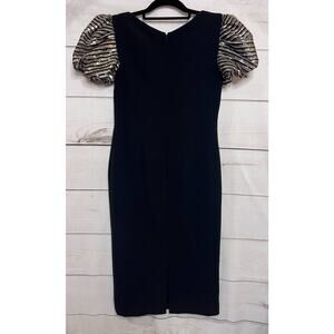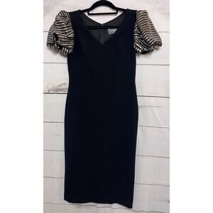 Theia Dress Black With Gold Silver Sequins Poof Short Sleeves Size 4