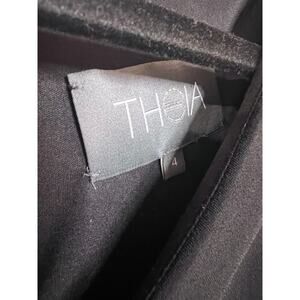 The Theia Dress in black with gold and silver sequins is a stylish A-line dress perfect for a party or cocktail event. This knee-length dress features short sleeves and a zip closure for easy wear. Made of polyester, it is designed for regular size 4 women and is ideal for winter and spring seasons. The dress is adorned with sequin accents, adding a touch of sparkle and glamour to the overall look, making it a standout choice for any special occasion.
