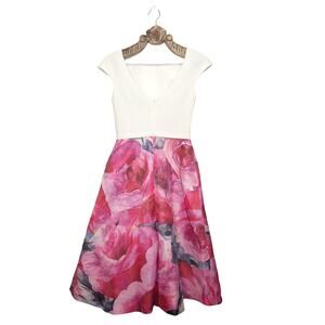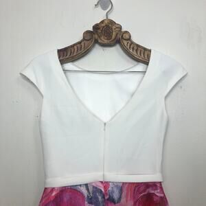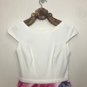 Theia Dress Watercolor Floral Contrast Full A Line Skirt Tea Midi Length 6