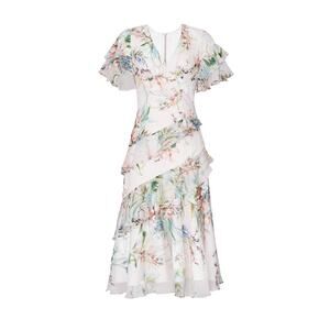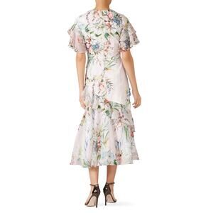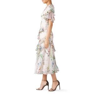 Theia Floral Ruffle Midi Dress Blush Pink Size 2
