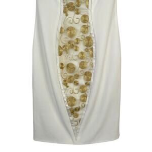 Theia Gilded Embroidered Sheath Cocktail Dress White & Gold Size 6 Event