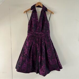 Theia Halter Collar Floral Flare Dress in Purple sz 6