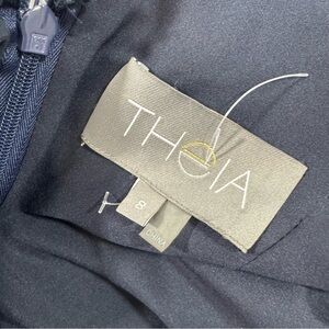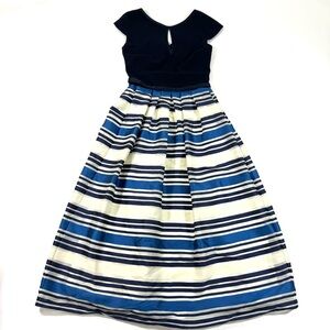 Theia Jacquard Nautical Stripe Midi Dress Blue Size 8 Cap Sleeve V Back