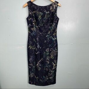 Theia Navy Lace Multi Mermaid Rainbow Color Cocktail Dress 882878 Sz 4