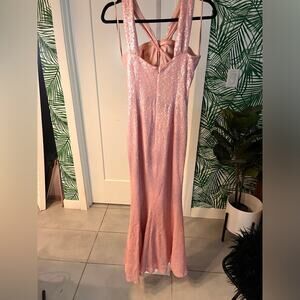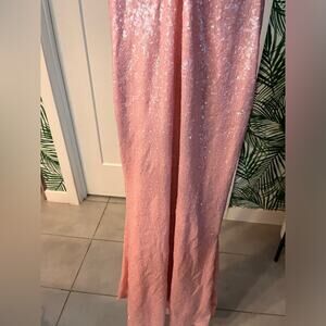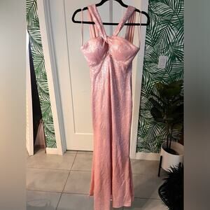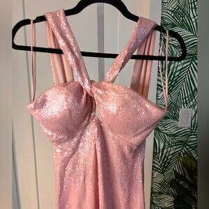 Theia Pink Sequin Cross Halter Maxi Cocktail Dress Size 8