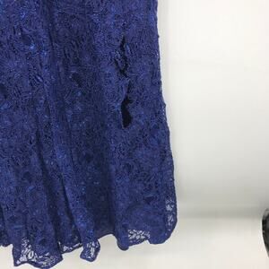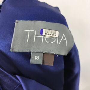 Theia Shimmering Element Gown 18 Metallic Floral Lace Cap Sleeve Crew Maxi Blue
