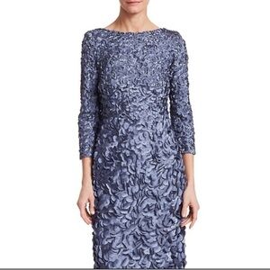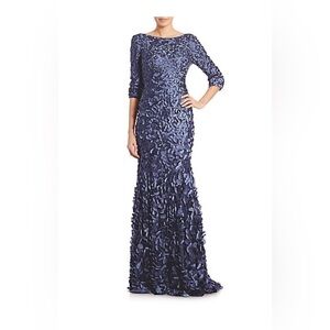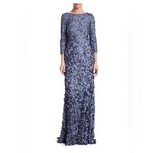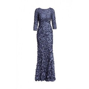 Sold at Sax fifth Avenue. Theia petal boat neck gown in the color "Slate". Absolutely Stunning! Textural elegant floor-length gown covered in petals.