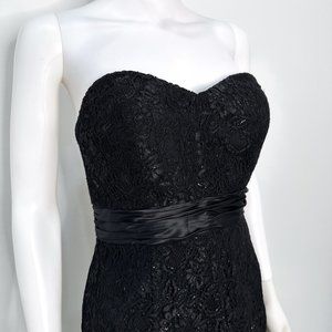 Theia Strapless Shimmer Lace Sweetheart Neckline Mini Dress in Black Size 4