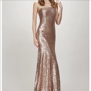 Theia | Gigi Rose Gold Sequin Mermaid Dress