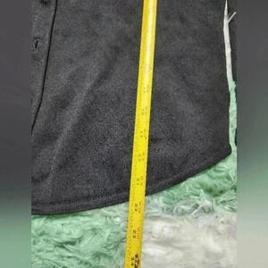 Elegant black cardigan with ruffled front. Button-up design. Perfect for any occasion.