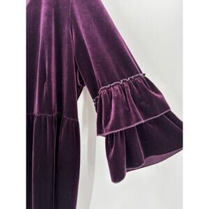 Theme Vintage Velvet Blouse Womens 3X Purple Babydoll Scoop Neckline Bell Sleeve
