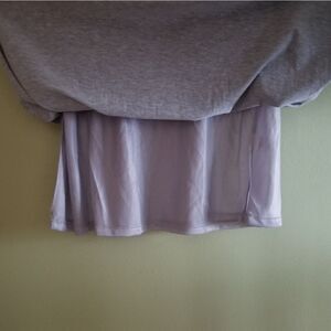 This Theme two tone grey ruffled colored neck dress can be worn with a Jean jacket or with heels to go out for the night on the town. Fully lined, elastic sleeves. NWOT. A-30. A3006