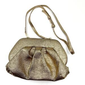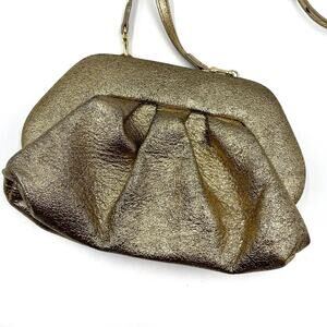 Themoire Gea Clutch Bag Gold Metallic Vegan Laminated Detachable Crossbody