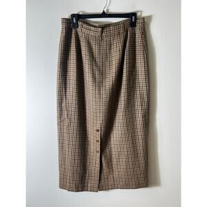 Theo Miles Brown Wool Houndstooth Suit Midi Skirt size 14