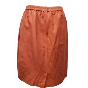 Featuring a jacket and skirt, both in a beautiful burnt orange color, this set is made from a comfortable linen and rayon blend. Perfect for any occasion.