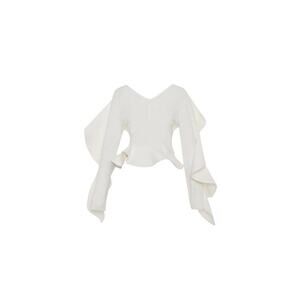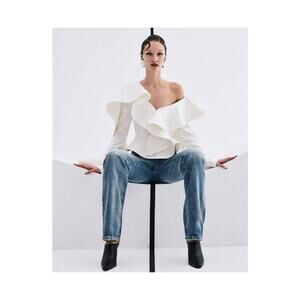 Theo the Label Gaia Ruffle Shoulder V Neck Top in Ivory M