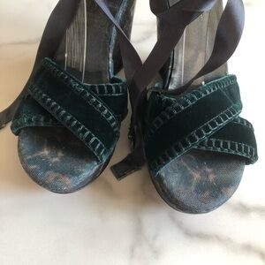 Stuart Weitzman x Theodora Callum Biarritz Velvet Lace-Up Wedge Sandal Green