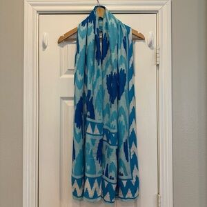 Theodora & Callum Blue White Pattern Rectangle Scarf 66” X 37” Versatile Beach